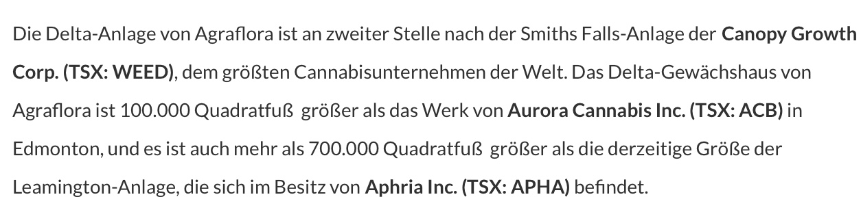 der WO Seite. am meisten gefällt mir die 1 Milliarde CAD und das AgraFlora Organics in einem Zug mit den "noch" größten genant wird !!! wie Canopy Growth , Aurora Cannabis u.s.w
