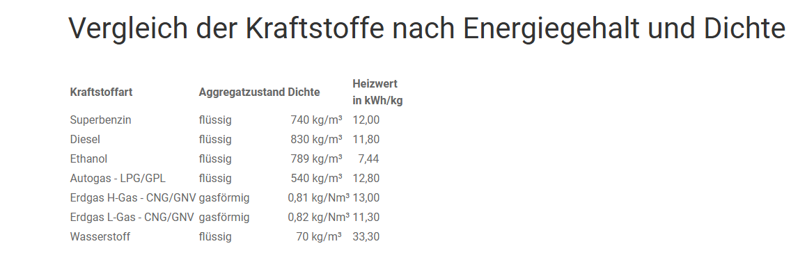 normalerweise vergleicht man die gravimetrische Energiedichte (bspw. Batterien oder flüssige Kraftstoffe) . Bei H2 ist die volumetrische Energiedichte maßgeblich.