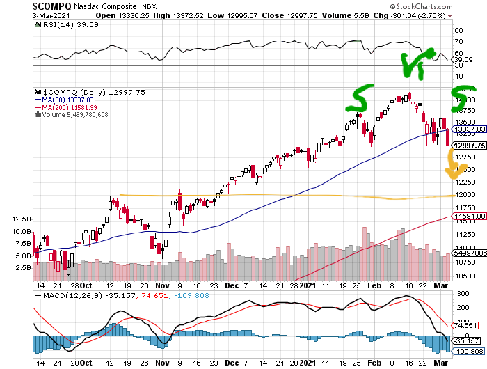 Ich befürchte der Nasdaq wird die SKS durchziehen, auch wenn die zweite Schulter nicht klassisch höher als die erste sich darstellt!
