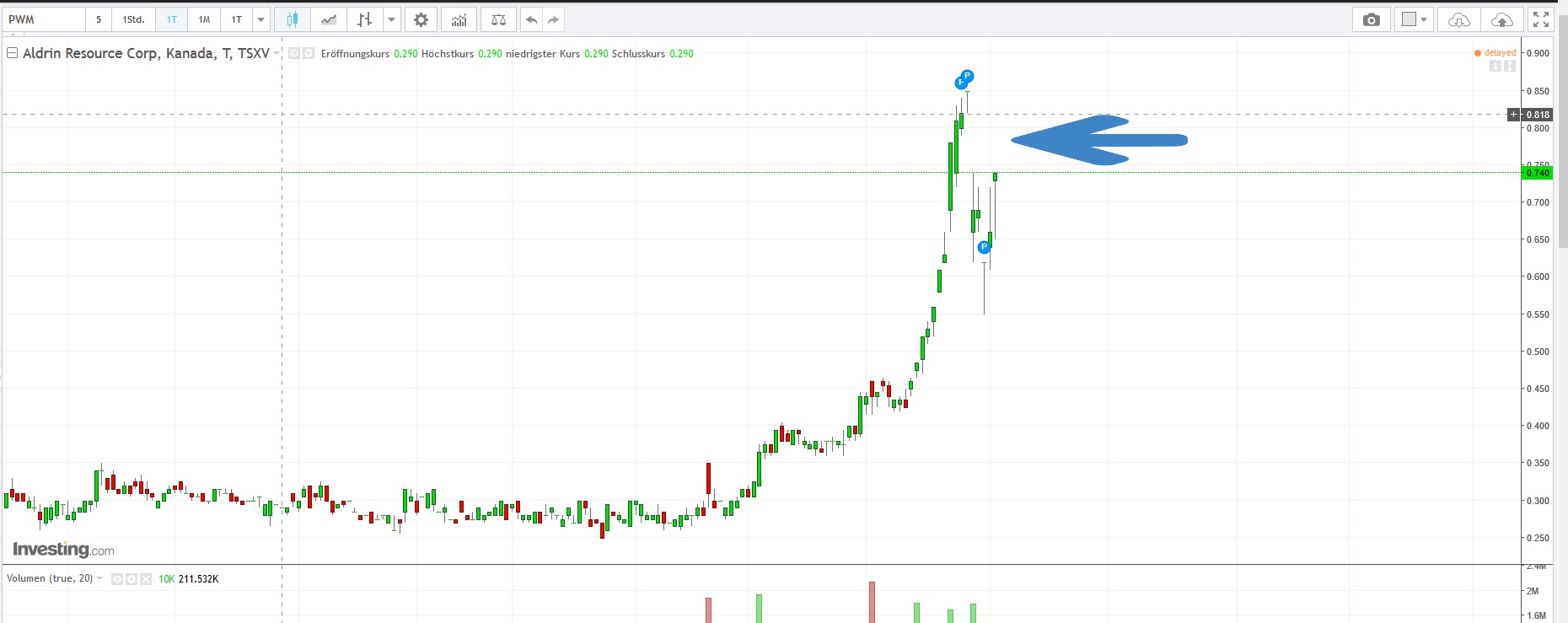 doch mal wieder richtig gut aus! Gap geschlossen. Klasse News. Aktie überwindet problemlos 0,70 CAD und schließt, wie wir es in den letzten Wochen gewohnt waren auf TH bei 0,74 CAD. Alles im grünen Bereich!
