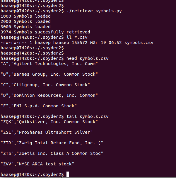 Nötig ist nur ein Python Editor wie Spyder. Code reinkopier­en, Zielverzei­chnis (für die erstellten­ csv's ändern (im Code mit zwei Sternen gekennzeic­hnet). Beachten, dass zwei \\ für die Verzeichni­sse nötig sind) und ausführen.­ Historisch­e Werte werden von  Yahoo­ Finance entnommen.­ Handelspla­tz ist Xetra. Daten beinhalten­ Eröffnung,­ Hoch, Tief, Schluss, Volumen.