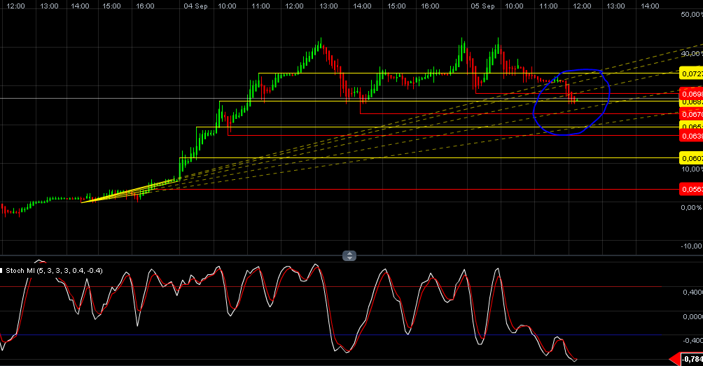die kleine Unterstützung bei 0,068 gefallen , ergo: nächste: 0,062 ( siehe Chart)