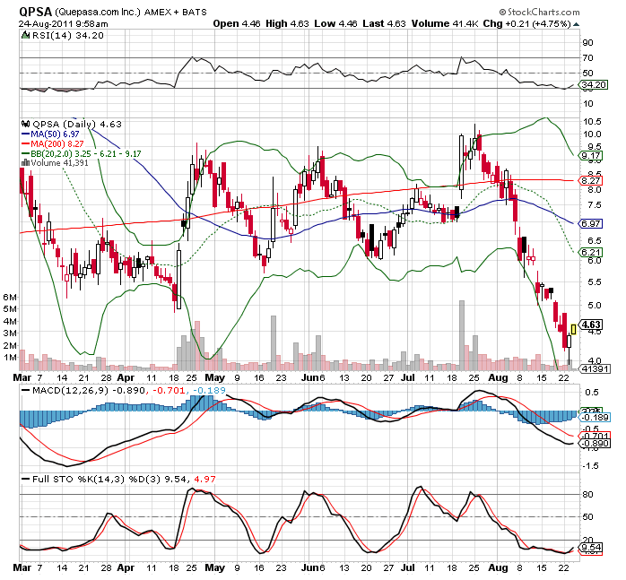 WEST PALM BEACH, FL -- (MARKET WIRE) -- 08/11/11 -- Social media technology company, Quepasa Corporation (NYSE Amex: QPSA), owner of popular Latino online social network Quepasa.com and social gaming studio Quepasa Games today reported results for its second fiscal quarter of 2011 ended June 30, 2011.