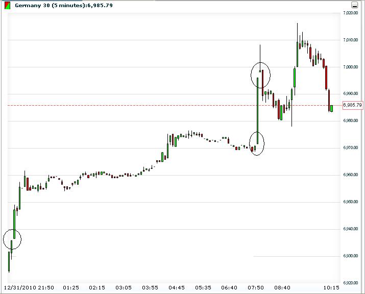 - DAX startet mit einem rising Window - noch keine Handelsposition eingegangen, gucke auf 5er