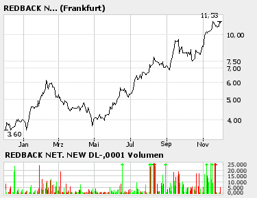 neue Kursziel von 15$ schneller erreicht wird, als die ANALysten es nachkorrigieren können ;) Bei Redback ist kein Halten mehr...