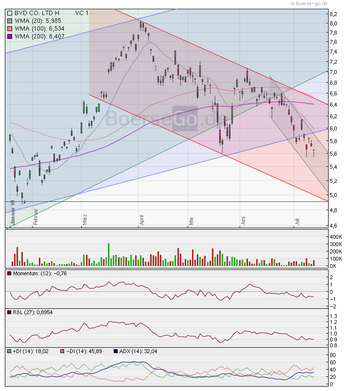 BYD ging im Juli 2002 zu einem Preis von 10,95 HKD an die Hongkonger Börse. Heute kann sie im Vormittagshandel um 2,9 Prozent auf 56 HKD hinzugewinnen.