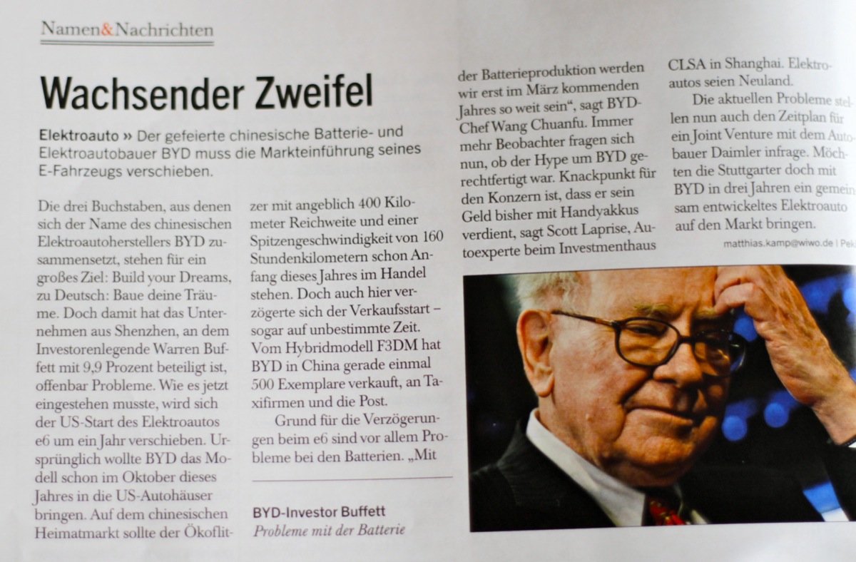 Beitrag von inmotion1: ...Buffet ist aus der Aktie längst raus. Wer am Markt erfolgreich sein möchte, sollte auch entsprechend professionell investieren, z.B. um an Insiderinformationen zu gelangen. Bei Byd sind derzeit noch die Dummen investiert, die d.....