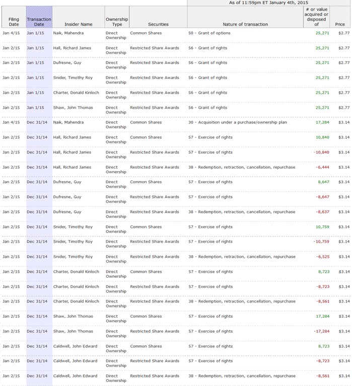 Noch ein paar getätigte Transaktionen durch das Management, seit dem 31. Dezember 2014.