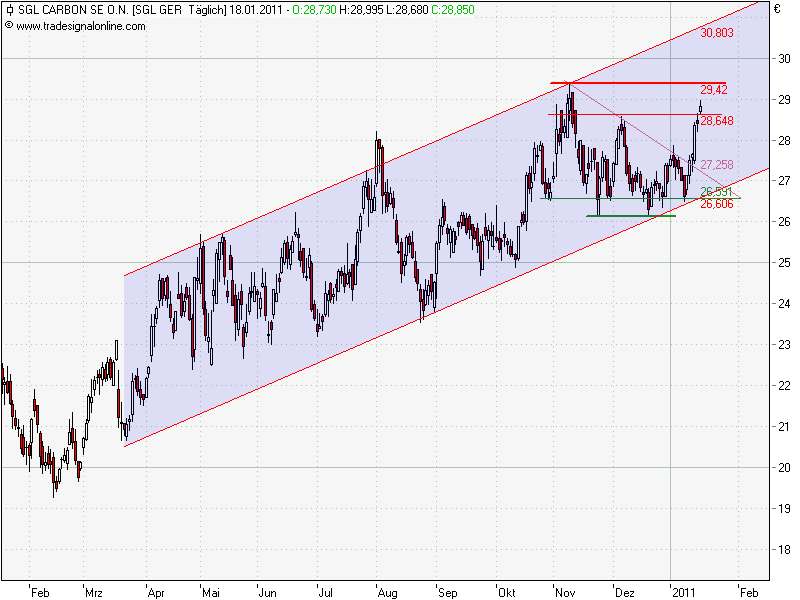 SGL - Charttechnik Wenn die SGL heute auf diesen Level schließt sollte dann auf jedenfall Platz bis zu 29,42€, und wenn der Wiederstan­d fällt gehts aufwärts..­.
