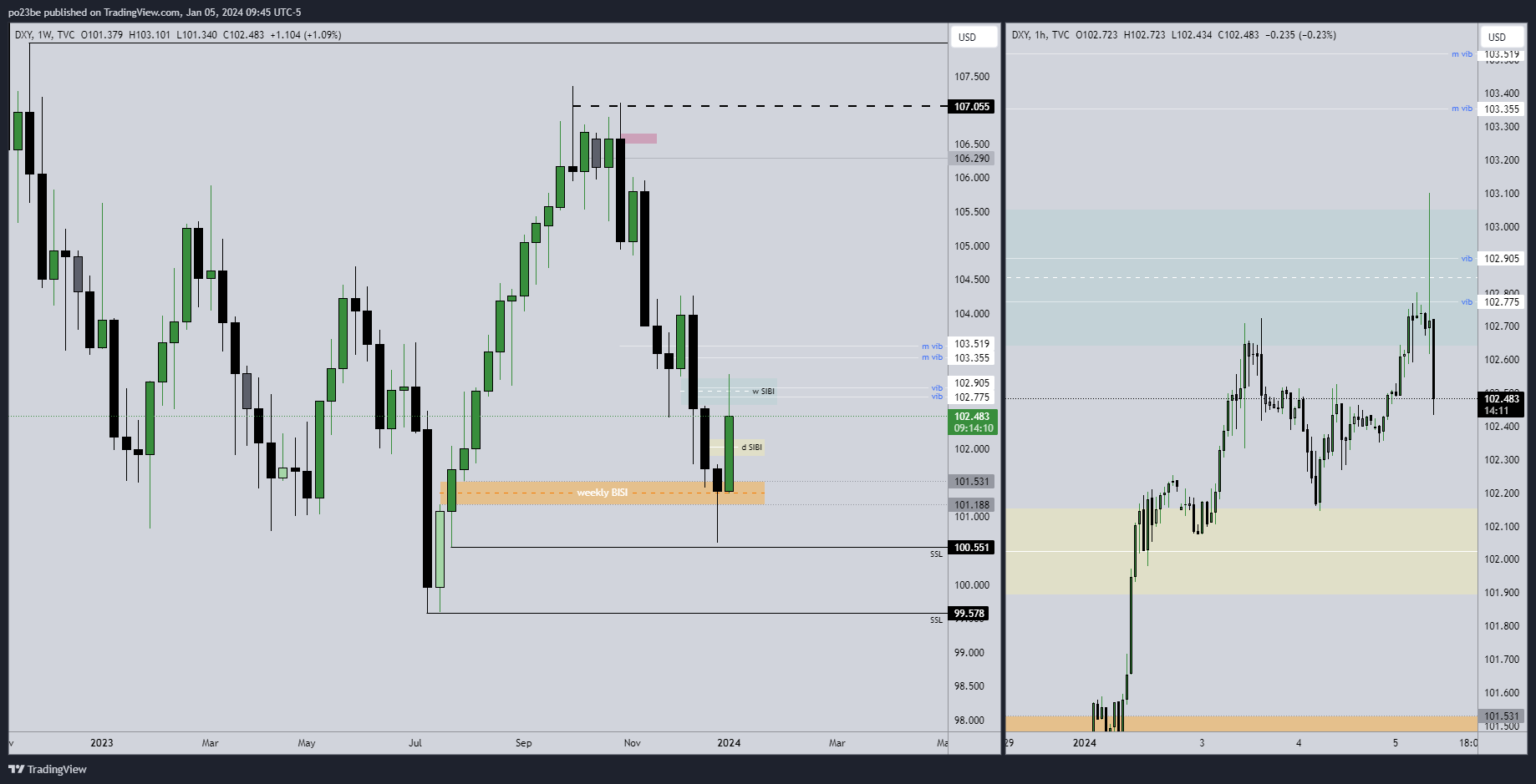 dxy perfekt im weekly FVG + orderblock­ abgeprallt­.. jetzt uter 100,51 und 99,578, dann Indizes to the moon