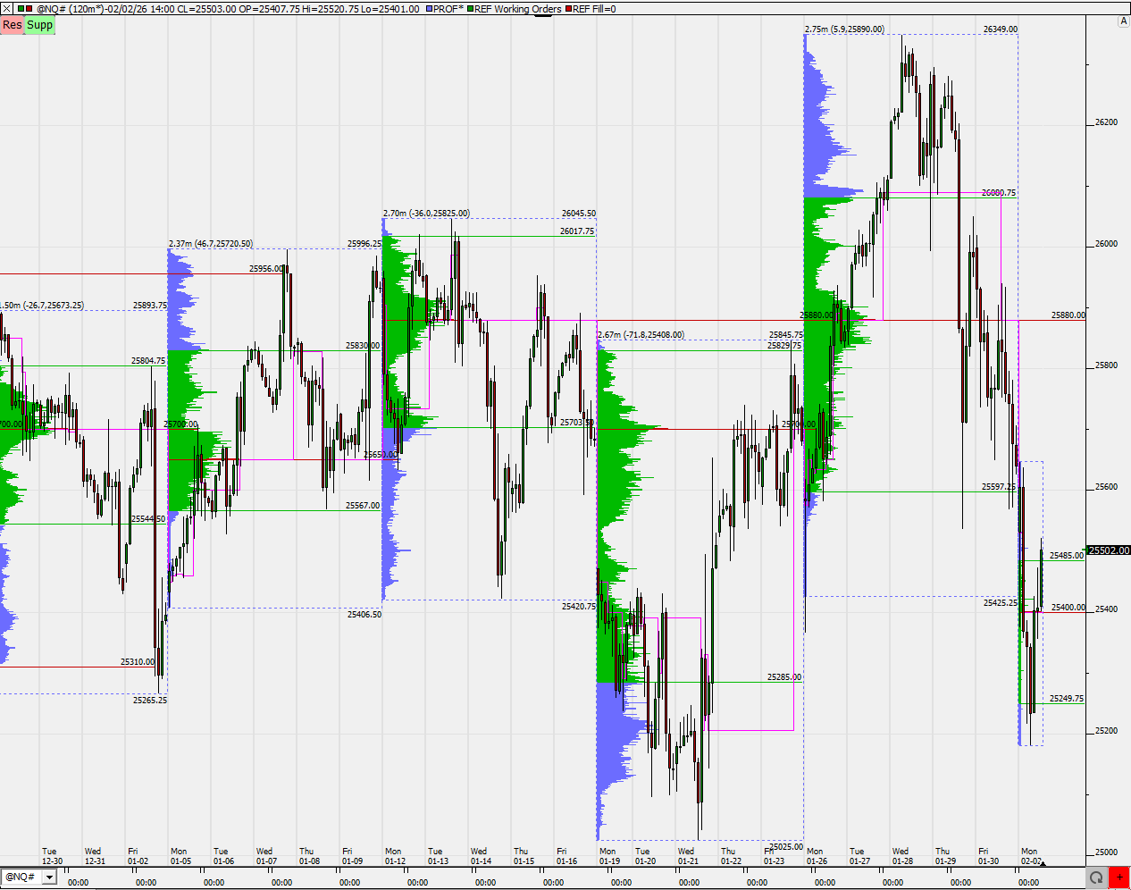 NQ Am Freitag ging ich davon aus, dass der Abwärtstre­nd in der RTH als Akkumulati­on anzusehen war aufgrund der korrektive­n Bewegung. So gesehen könnte der Taucher unter die Freitags-R­ange ein vorerst ein letzter Versuch nach unten sein. Bin gespannt, wie die RTH-Sessio­n läuft und wo wir heute schliessen­.