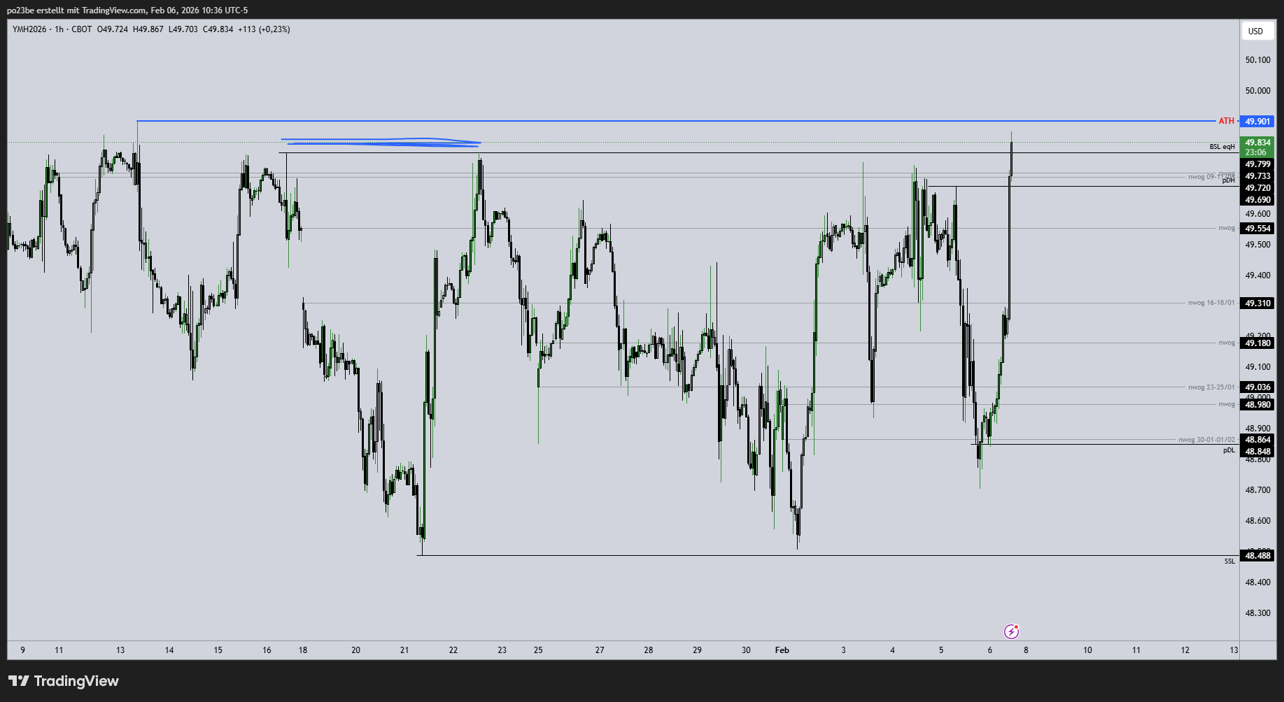 beim YM hatte ich vor einiger Zeit mal die equal highs bei 49799 erwähnt - die hat er sich heute geholt - vielleicht­ geht er noch auf 50k - das weiß ich nicht - beim ersten Shortzeich­en würde ich den aber shorten - er wird auch unter 48488 kommen...