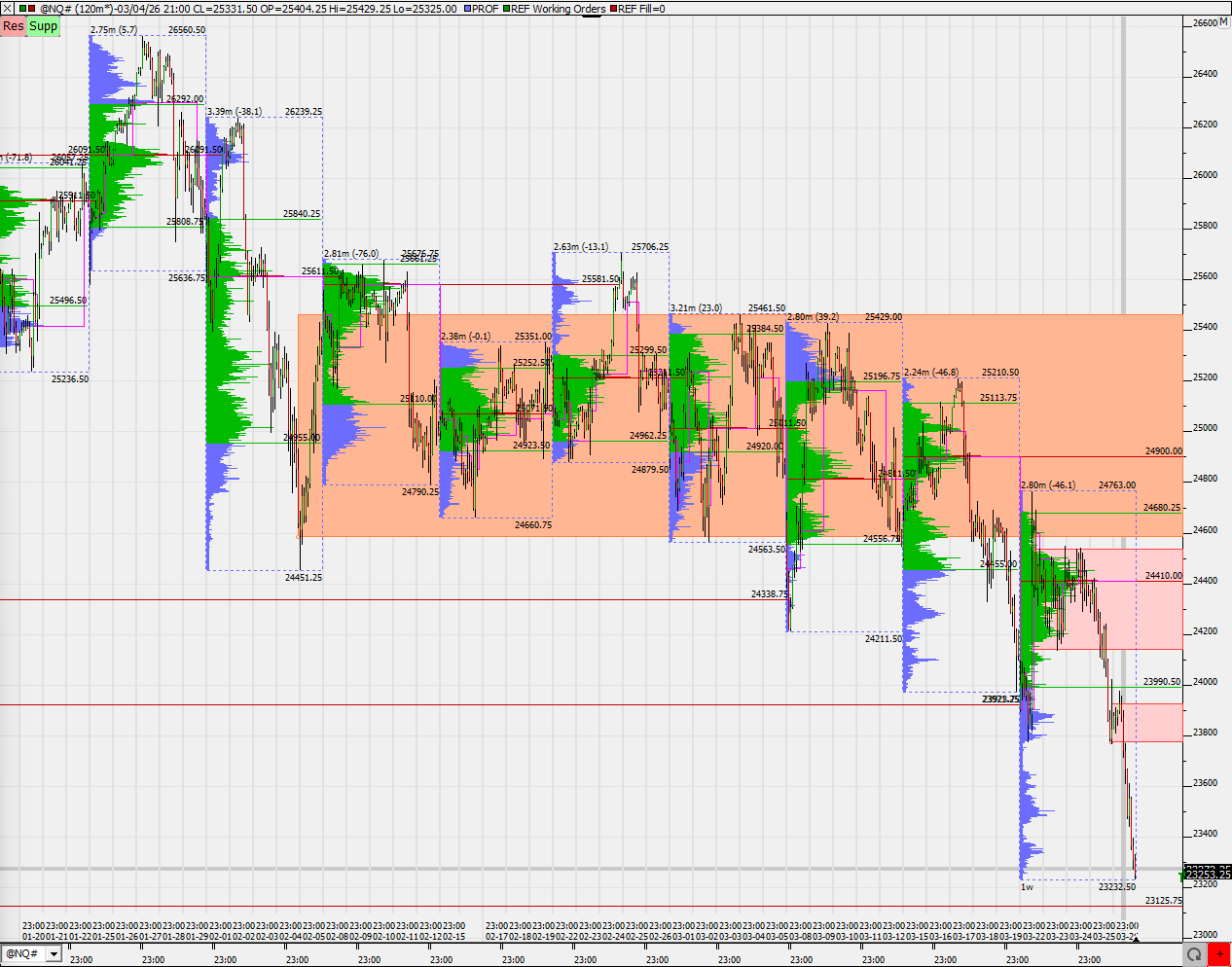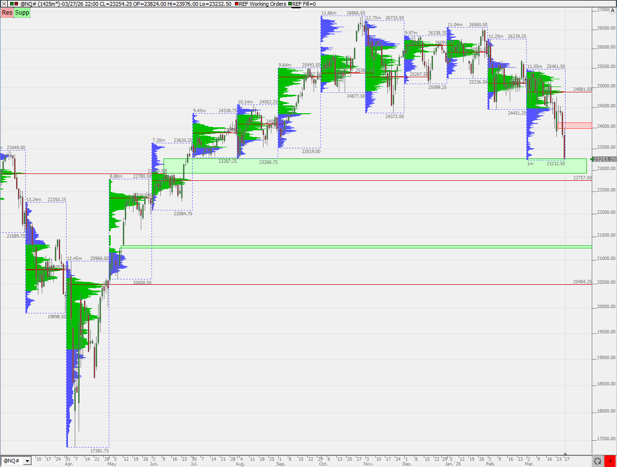 Hier noch ein Chart mit dem März Kontrakt, wird bald ändern. Die Tiefs vom 9. März müssen auch noch beachtet werden. Bei den zwei grünen Bereichen handelt es sich um low Volume Bereiche.
