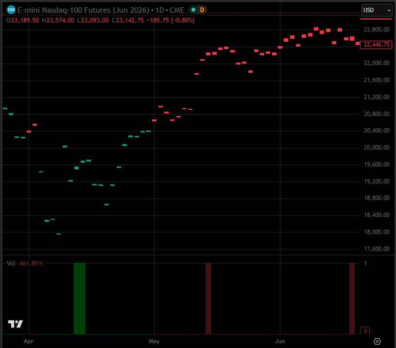 Wenn Du dir den Void im Tageschart anschaust dann war in dieser Zeit praktisch kein Handel vorhanden. Am 11. und 14. Mai 2025 wurde je 1 Kontrakt gehandelt. Der nächste Kontrakt wurde erst am 14. Mai gehandelt. Der Void befindet sich demnach in einem Bereich, wo kein Handel stattgefunden hat. Da gab es wohl irgend einen Settlement Preis am Ende des Tages, weiss aber auch nicht, wie dieser allenfalls berechnet wird. Aus diesem Grund bevorzuge ich die Continous Kontrakte, da ist dann auch das entsprechende Volumen vorhanden.