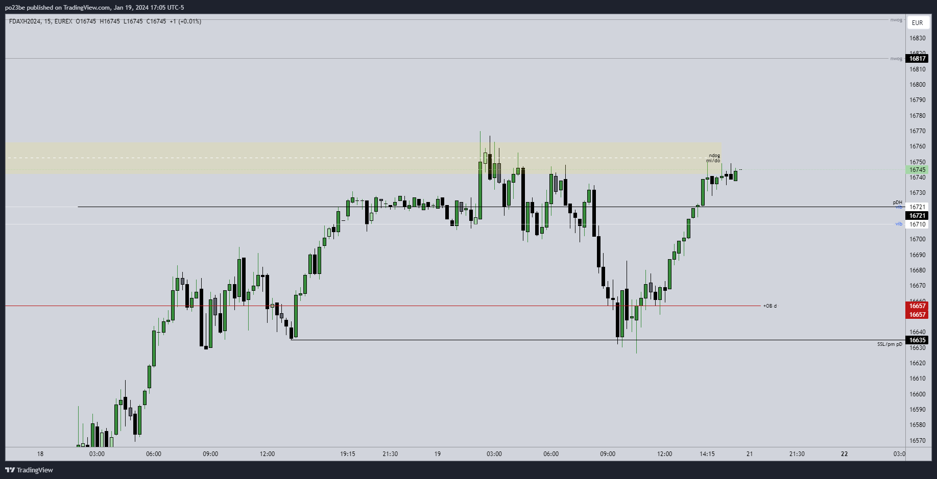Ich wollte eigentlich, dass er zuerst runter geht und dann hoch zur 16750 - er hats umgekehrt gemacht - aber genau dort wo ich vermutet habe (siehe #419) ist er abgeprallt und wieder nach oben - sellside von der Vortages pm session holen (13:00-16:00pm utc -5) - dann auf Umkehr warten und long.