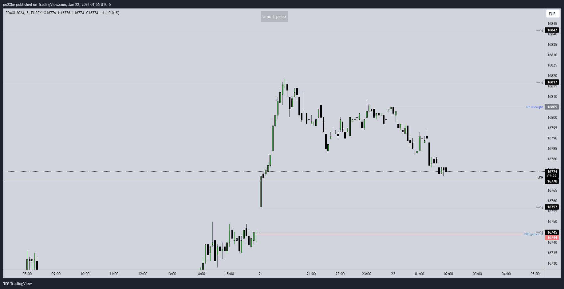 "Mein erstes Ziel wäre jetzt der Eröffnungskurs von der 15. Jänner Kerze, was auch das letztwöchige new week opening gap ist (hier ist auch ein 4hr OB) - 16817.."