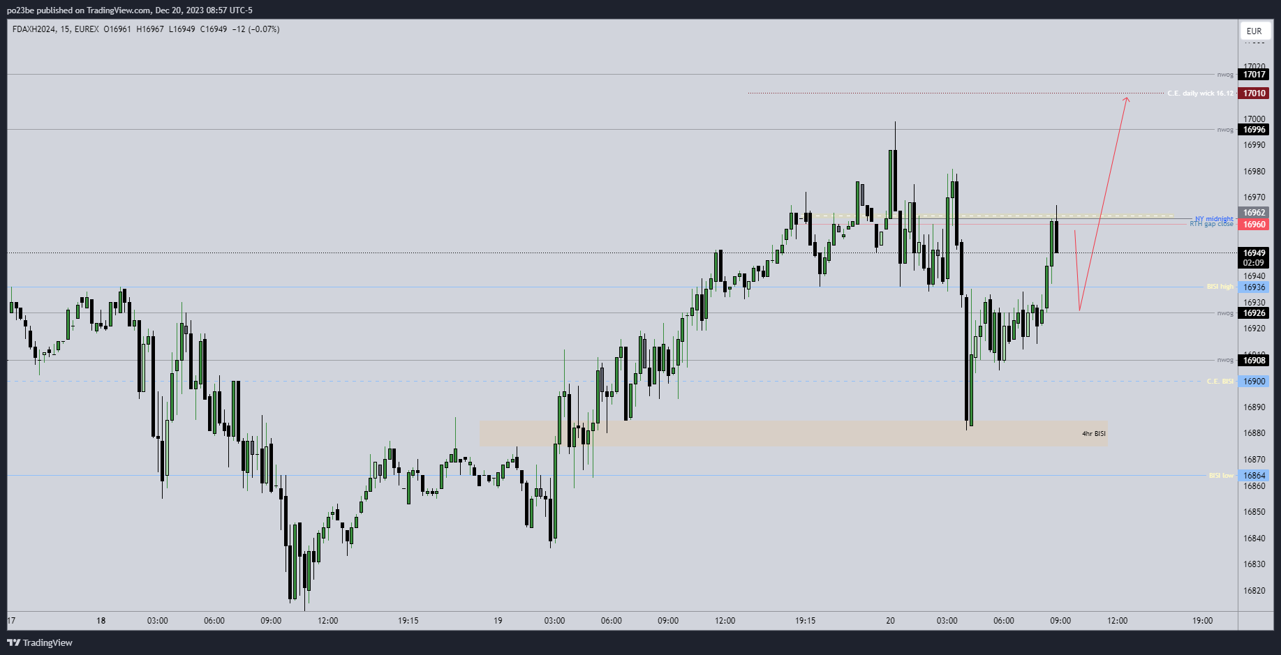 Short unter 16790, am besten in die VIB. Hoffentlich passiert das nicht overnight, das waeren "sehr sichere" points. Falls er morgen noch über der Marke steht, such ich mir einen Short-Einstieg
