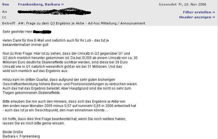 E-Mail von Suess Microtec Betreff:  AW: Q3 Zahlen