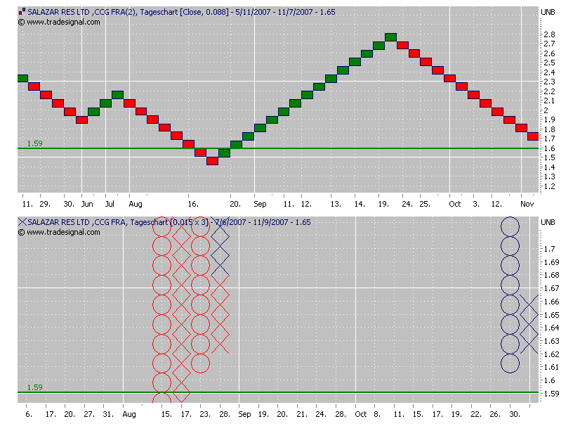 unser Update zu Salazar Resources (Kürzel CCG in Frankfurt) erreicht Sie erst heute. Gestern wurden mir noch interessante Informationen zugetragen, die ich erst heute verarbeiten konnte. Wie Sie wissen, vermeldete Salazar Resources die ersten Ergebnisse der Tiefenbohrungen auf dem Curipamba Projekt am 30.10.2007. Diese waren, geschürt an die Erwartungen, enttäuschend. Nachdem die News vermeldet wurden, wurden relativ viele Aktien in Frankfurt verkauft, da offensichtlich sehr viele Anleger enttäuscht waren. Diese Aktien wurden aber alle mit aufgehaltener Hand eingesammelt. Ein Ausverkauf nach schlechten Zahlen sieht, das weiß ich aus Erfahrung, absolut anders aus. Es gab keinen Kurseinbruch, deshalb passte diese Situation irgendwie nicht in das Bild einer vermeidlich schlechten Exploreraktie.