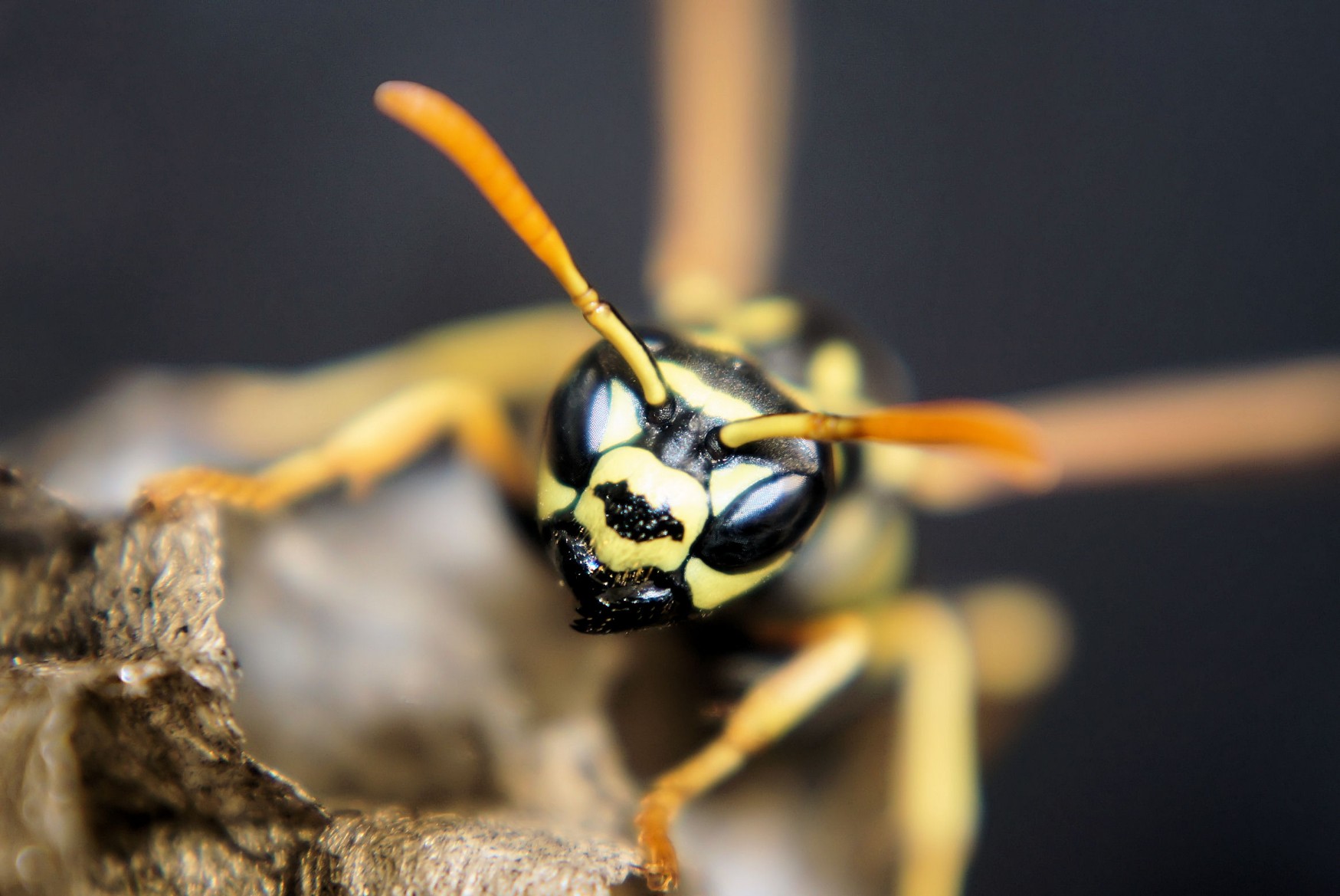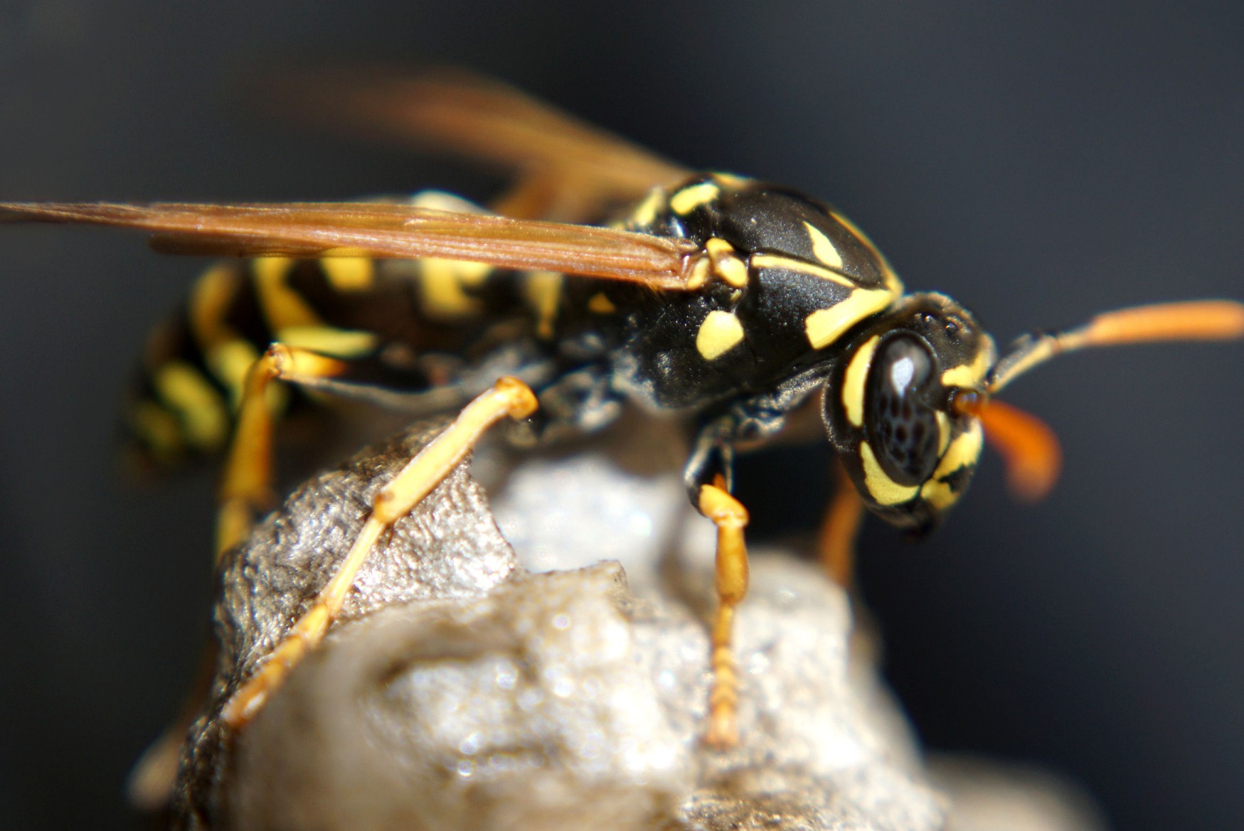 Unsere Wespen sind ja sehr friedlich, daher lässt sie mich wohl auch bis auf 10 cm mit der Kamera an sich und ihr Nest rankommen ohne Abwehrhaltung - das ist schon recht cool!