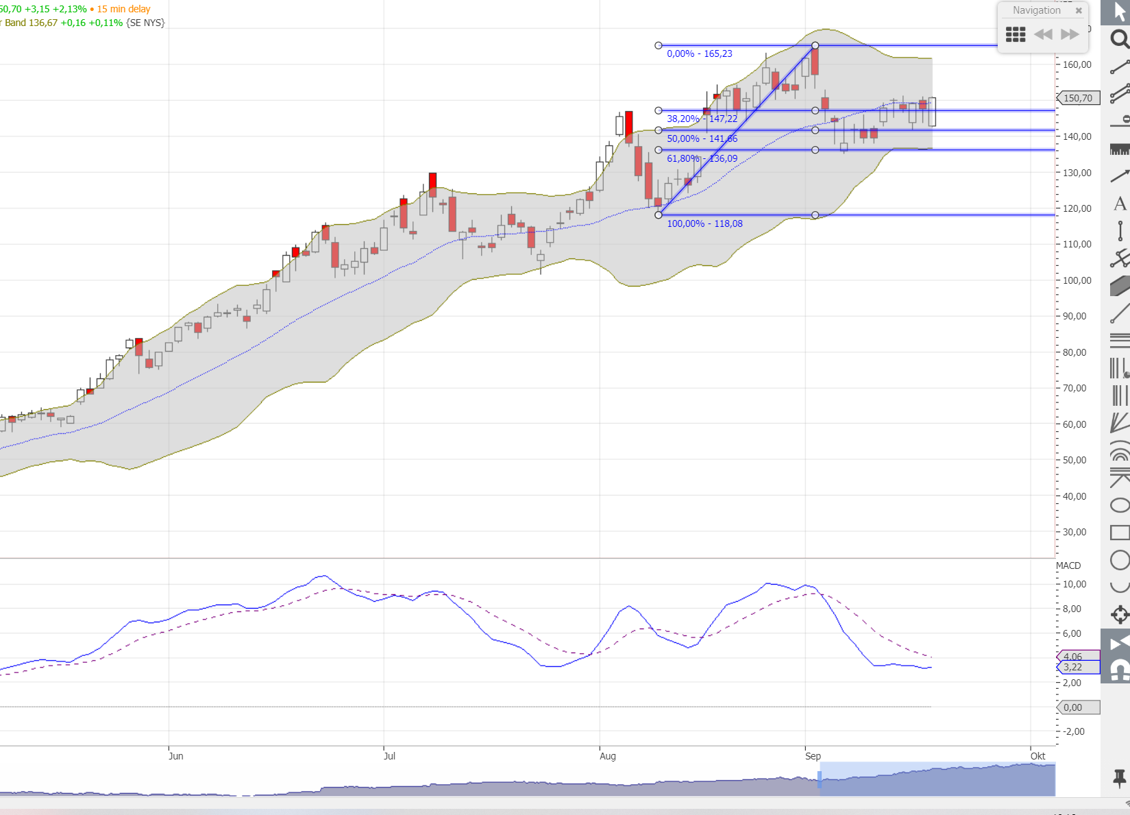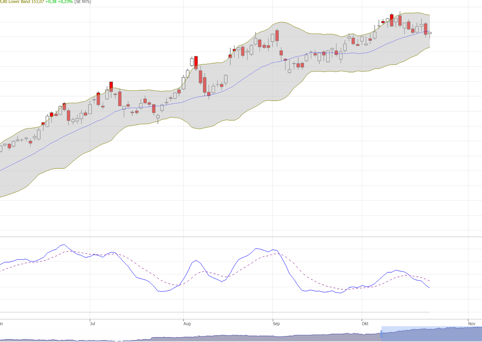 vom 24.07. bis 02.09. ein ordentliche Tassenformation. Kauf im unteren Bollinger, wo die Aktie jetzt gerade ist, war bei dieser Aktie immer eine korrekte Entscheidung.