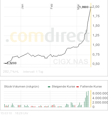 Der Kurs Stand vorher 0,11€ d.h. er müßte jetzt bei 2,75€ stehen.