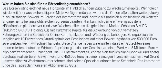 gar: die JJ Entertainment SE selbst? vor, bzw. erwägen dies (möglicherweise)??