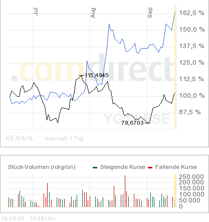 im Vergleich zu meinen Yingli Prozenten. Seid Nov. 08 bis jetzt, ca + 210 % und ab Ende 09 noch einiges mehr und dies steuerfrei!!!! Schläu-BWL-Student-Jespkohl wir vergleichen Dez. 09 wieder unsere Werte, der Abstand wird dann noch deutlicher ausfallen!!! ;-) Eine Schwalbe macht noch lange keinen Sommer und ab Herbst fliegen die bekanntlich gen SÜDEN und nicht gen Norden! Top die Wette gilt Schläu-BWL-Sudent-Jespkohl!