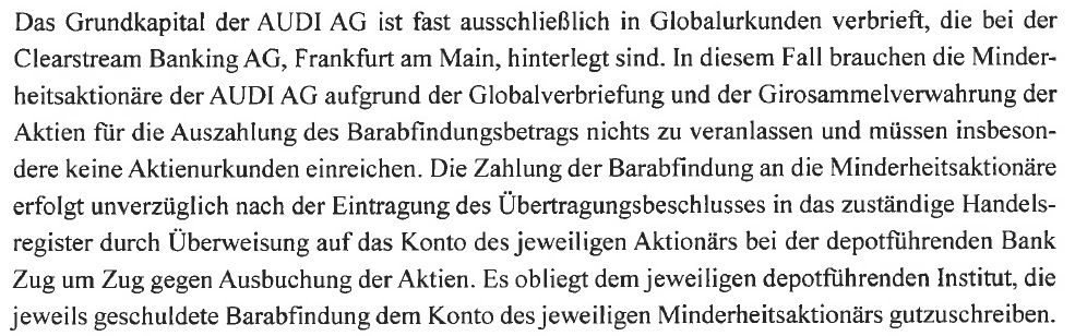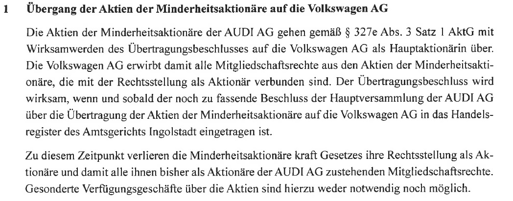 Squeeze-Out Audi Aktie, und jetzt? Hallo zusammen,