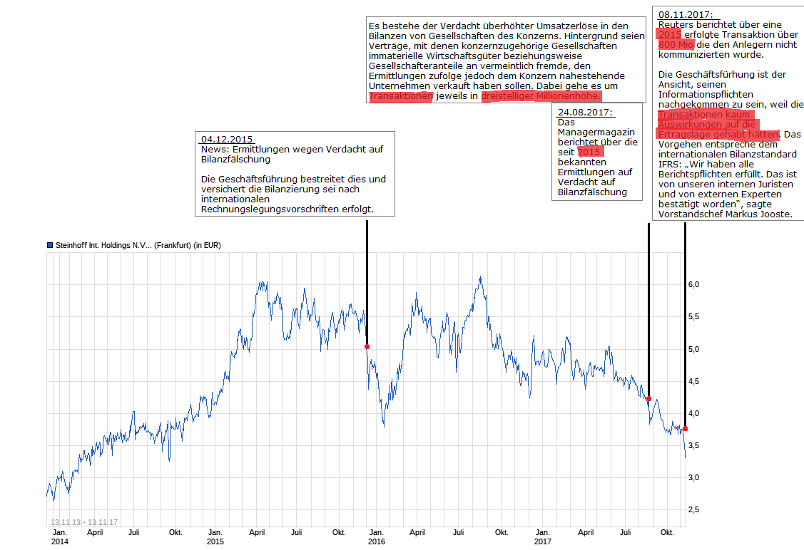 In der 2017er Berichterstattung über die angebliche Bilanzfälschung ist die Rede von einer dreistelligen Transaktion an unternehmensfremde bzw. unternehmensnahe Tochterfirmen.