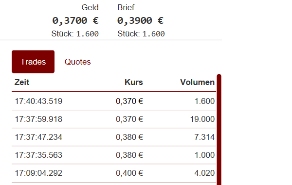 Und schon steht der Kurs wieder bei 0,39!