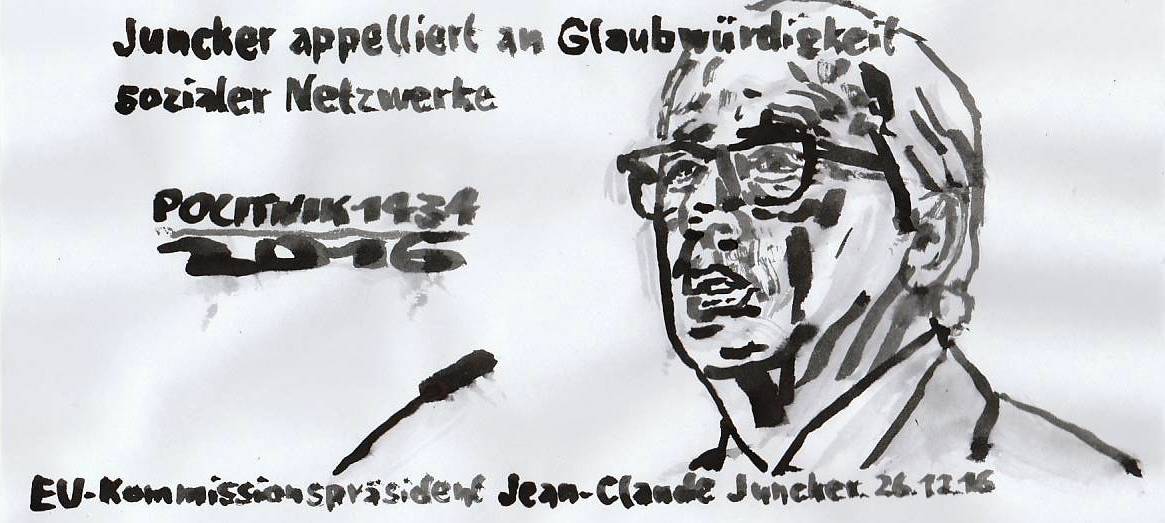 batzzzzz SCHLUSS damit hatta jesacht POLITNIK 1434 EU-Kommiss­ionspräsid­ent Juncker fordert ein stärkeres Vorgehen gegen Falschmeld­ungen. Und meint damit vor allem Facebook und Google. 26.12.16 (mehr bei buran & MARIO)