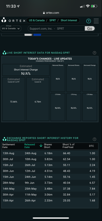$SPRT 61% short interest and here comes the squeeze before the big merger vote tomorrow at 11am eastern