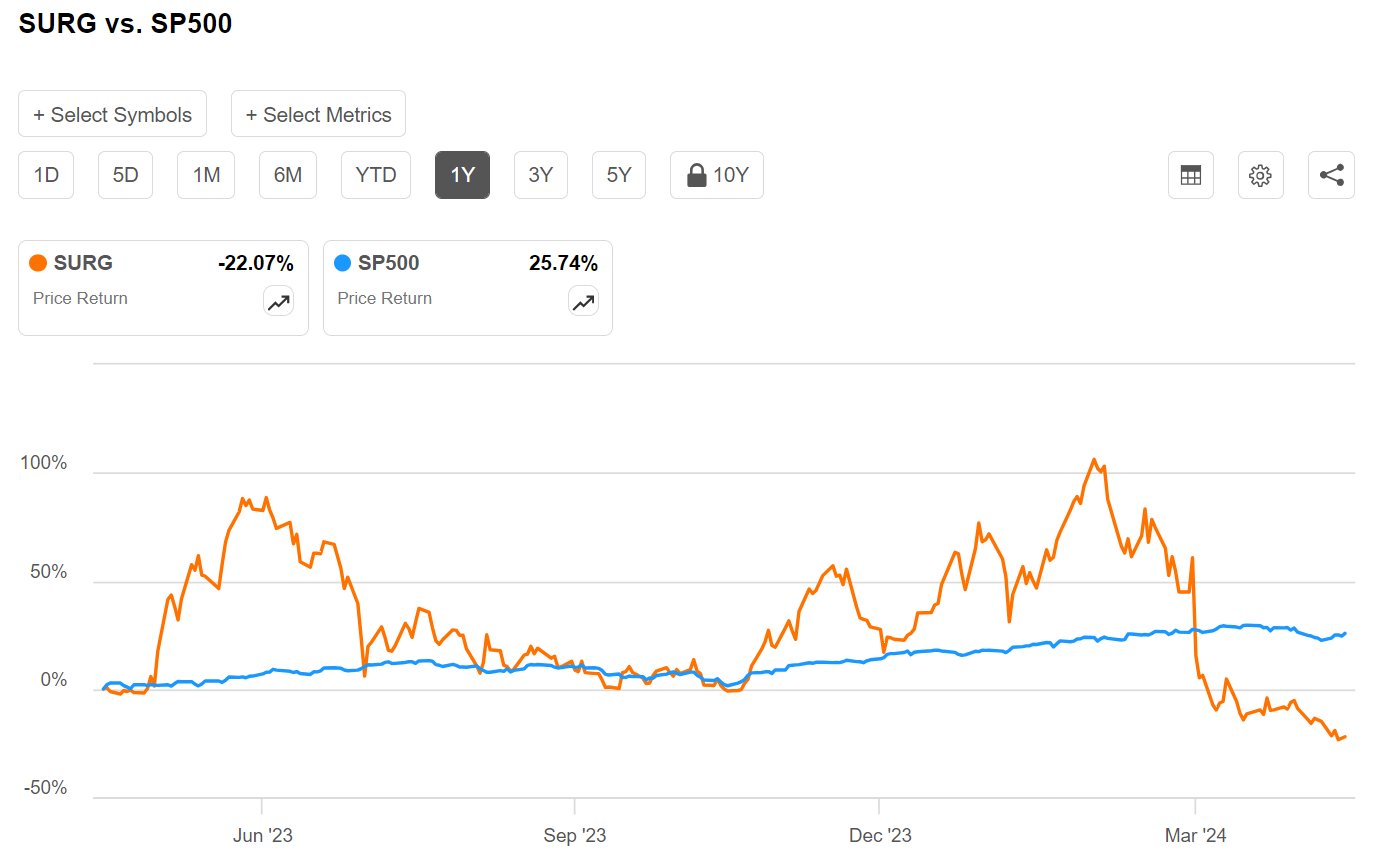 ( Quelle: https://seekingalpha.com/symbol/SURG/...val=1Y&metric=priceReturn )