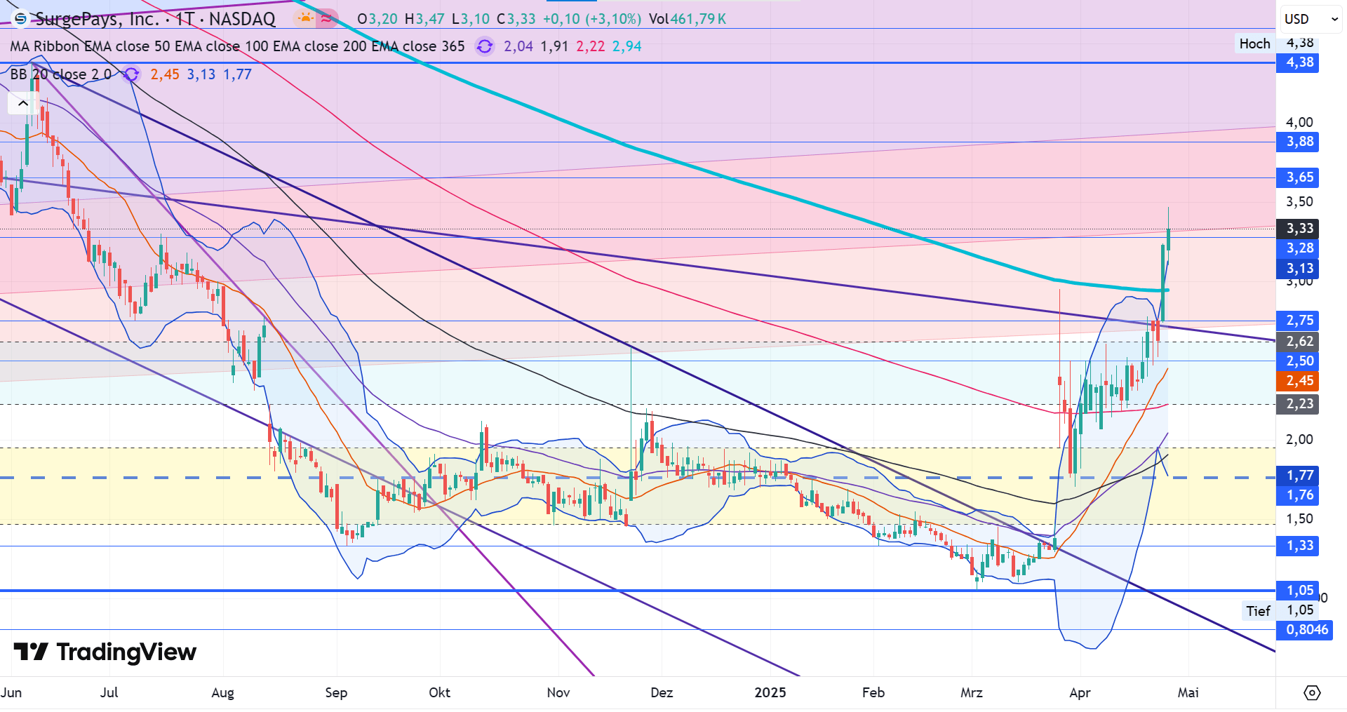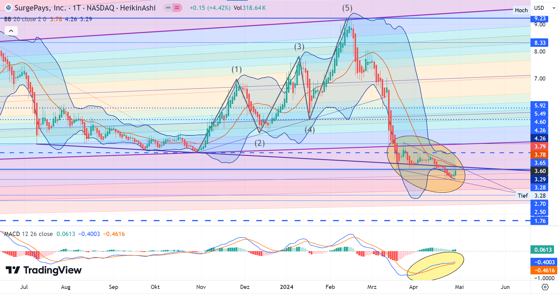 Nach dem Todeskreuz vom 10. April 24 springt Surgepays wieder an.