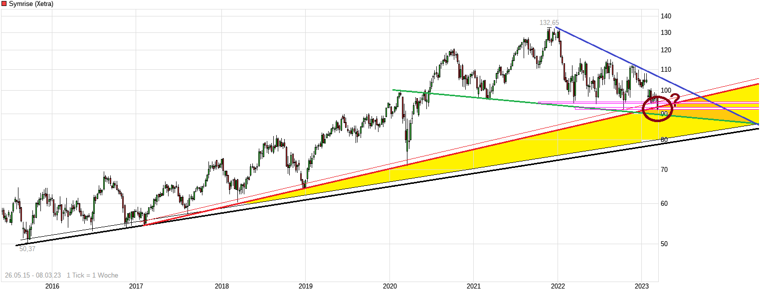 08.03.2023 Symrise: Marge schwach, Dividende enttäuscht – das drückt auf den Kurs - https://www.deraktionaer.de/artikel/aktien/...-den-kurs-20327860.html "..Symrise rechnet 2023 mit einer Profitabilität am unteren Ende seiner mittelfristigen Zielspanne.....Symrise steht derzeit unter Margendruck.."