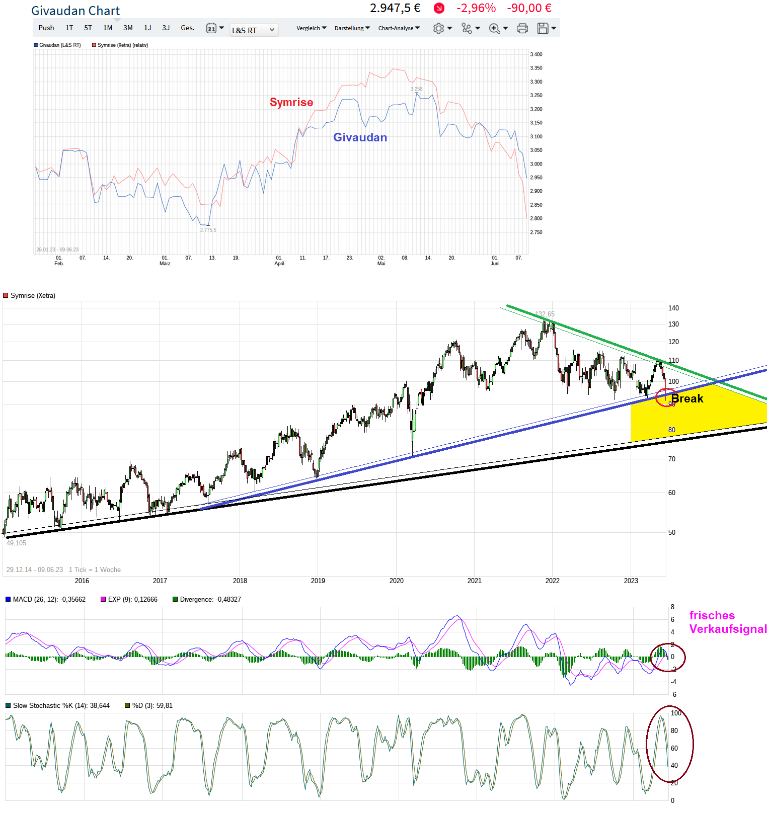 meine strategie: ich hoffe auf einen rücklauf an die € 96,00, dann fliegt die aktie wieder und ich kauf mir ein eis. fällt sie auf schlusskursbasis unter die unterstützung von € 91,50 fliegt sie per SL bei € 90,xx aus dem depot und ich kaufe mir kein eis.