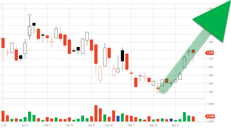 Das waren noch Zeiten , als Bullvestor im März diesen Jahres wieder mal Kurse von 2,50 CAD gesehen hatte , und die Kursraketen mit einem dicken grünen Pfeil wieder nur so zum Himmel stiegen ... :):)