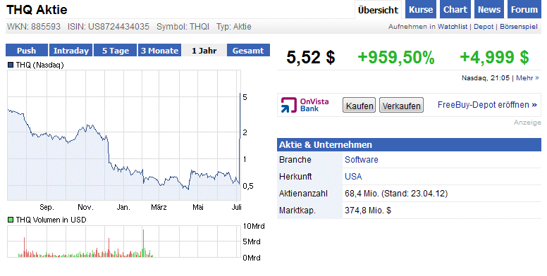 die THQ-shares­ bald wieder da stehen, wo sie vor'm Split standen...­ Mhhh...