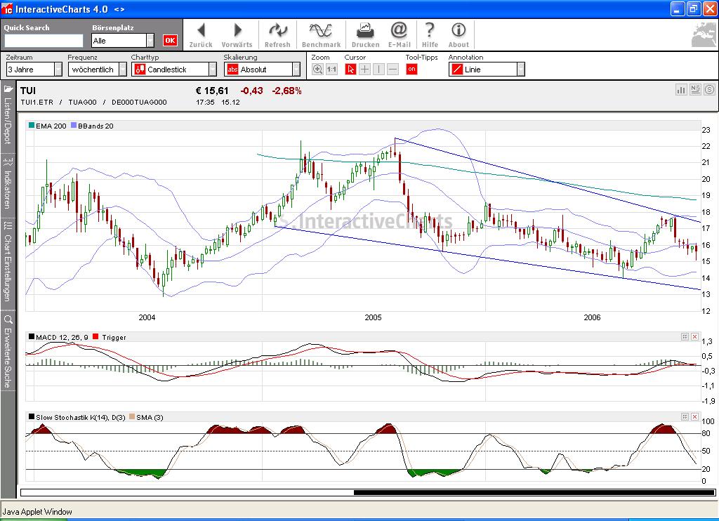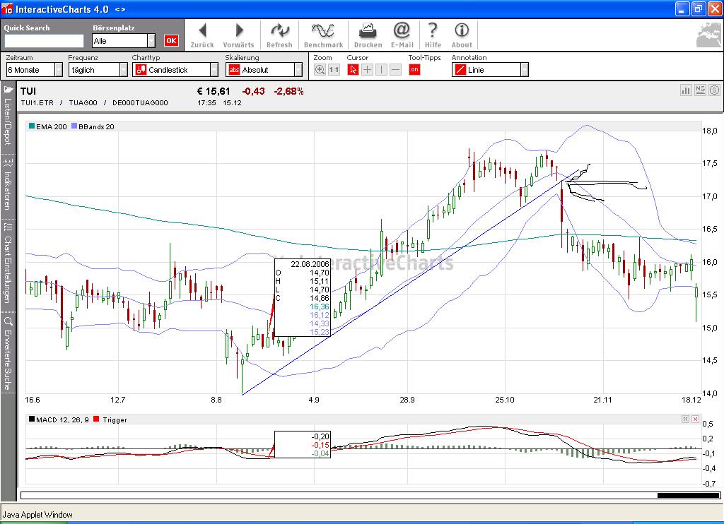 Finger weg von TUI aber nur in dem Sinne, dass man weder Aktie noch Calls kaufen sollte. Für einen Put sind die Aussichten, wenn man am Freitag auf dem richtigen Punkt eingestiegen ist (als es wieder bis auf 15,61 € hochging), durchaus rosig. L&S Realtime-Kurs von heute 15,30 €, sieht doch gut aus für alle, die short sind.