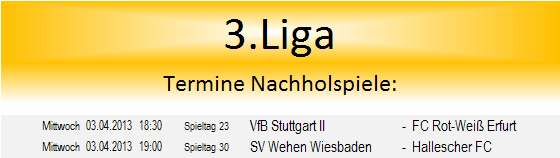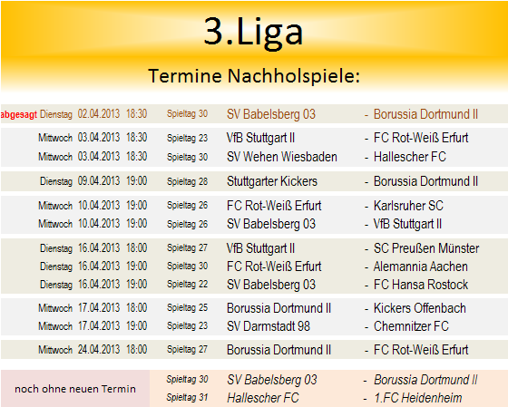 das Nachholspiel des 30.Spieltages, angesetzt für Dienstag 02.04.2013 um 18:30....