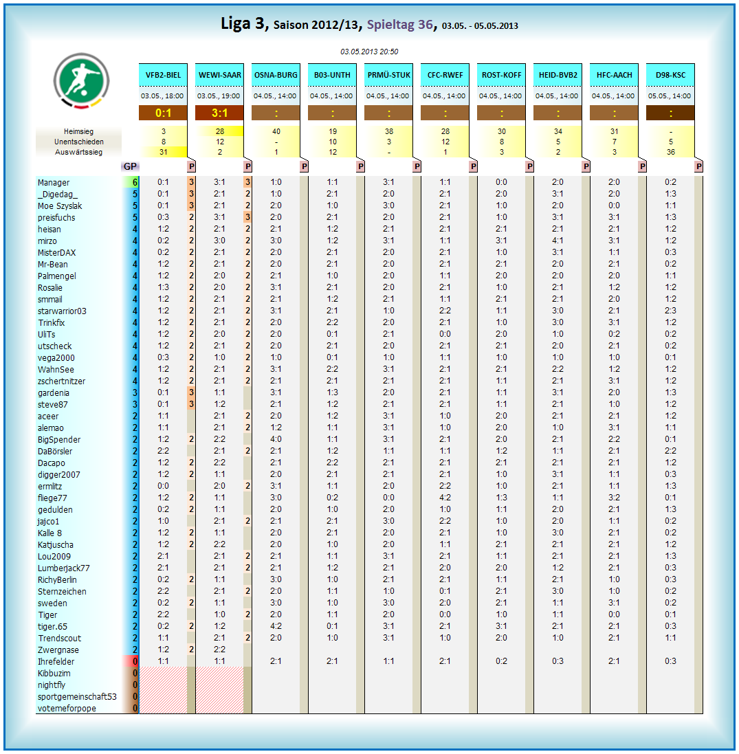 Auswertungen der Fr- und SaSpiele Liga3....