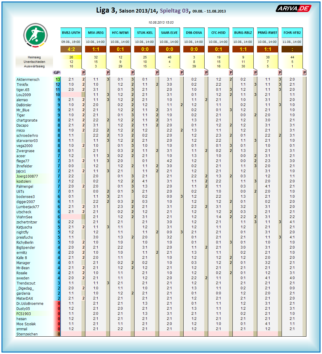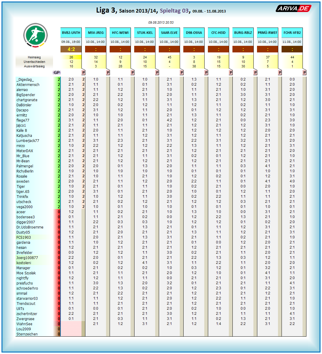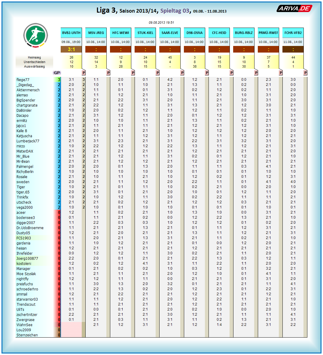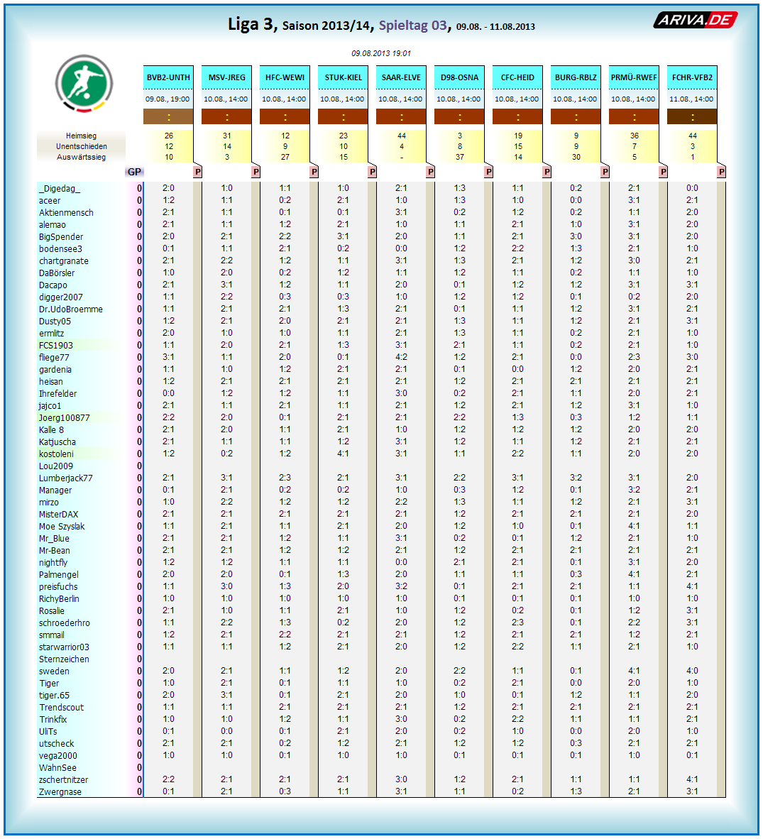 am 09.08.2013, ab 19:00 gehts in Liga3 weiter... denn nächstes WE ist DFB Pokal angesagt!!
