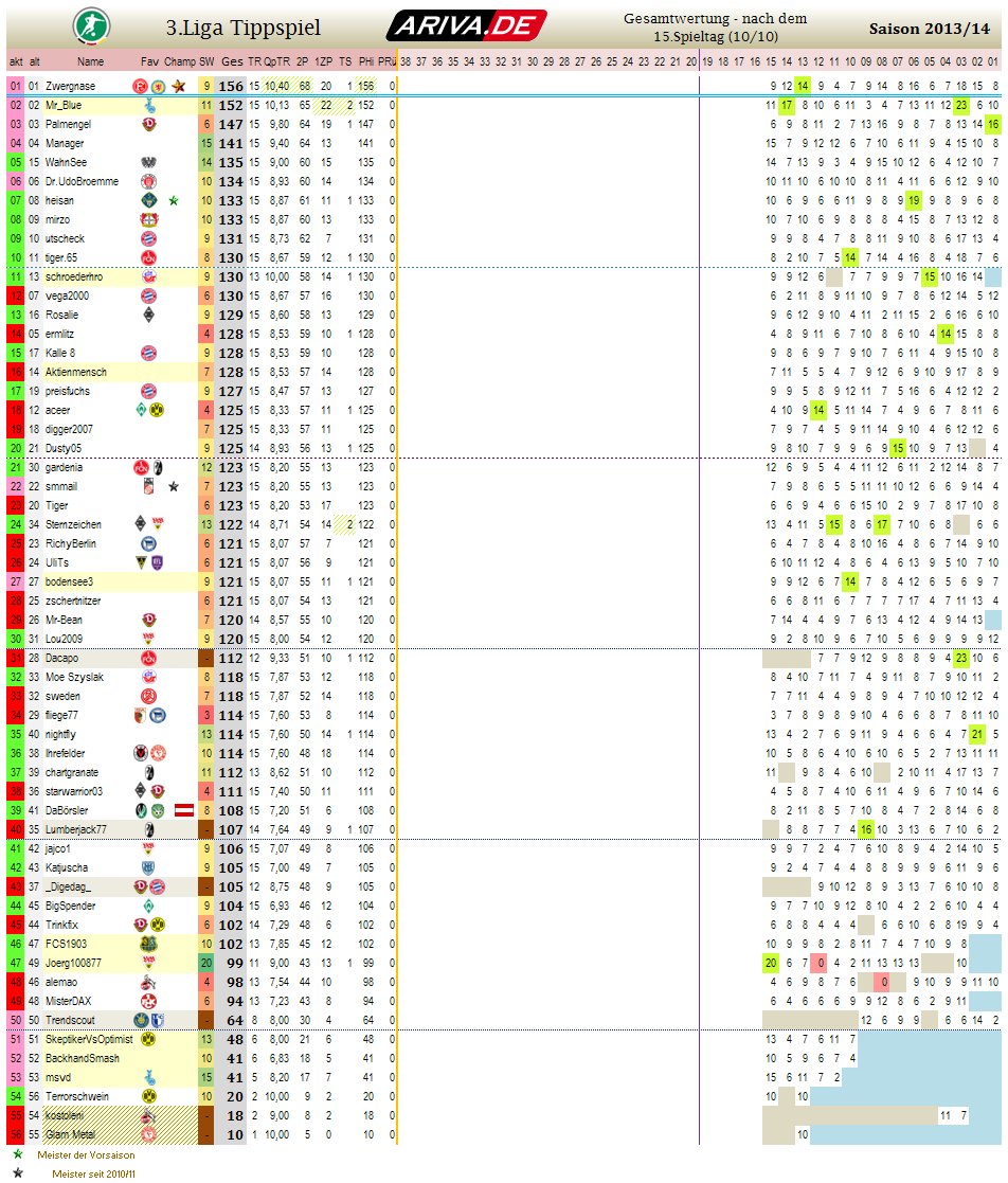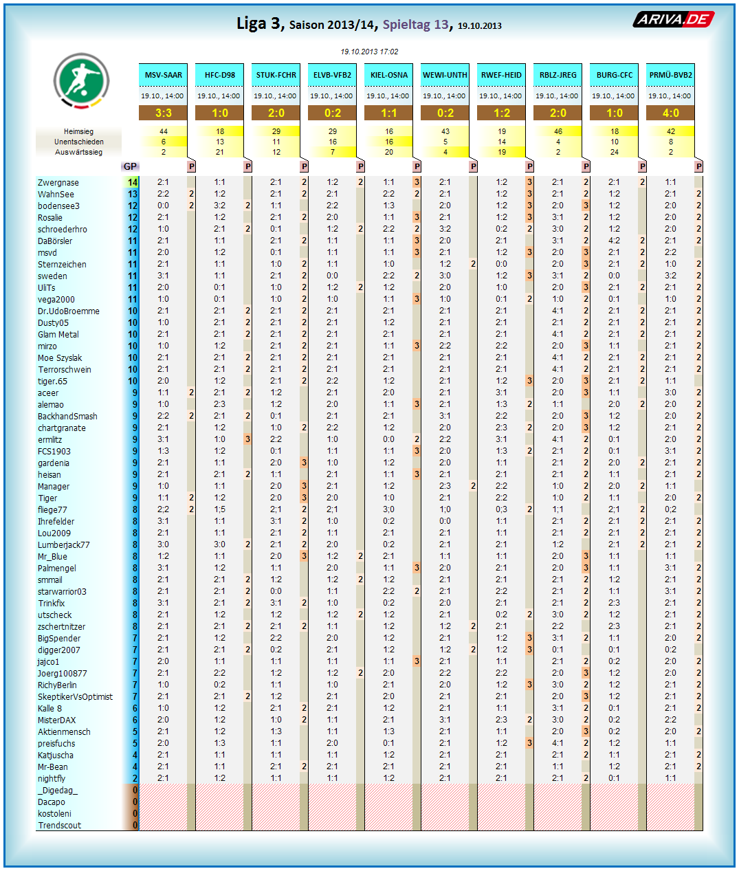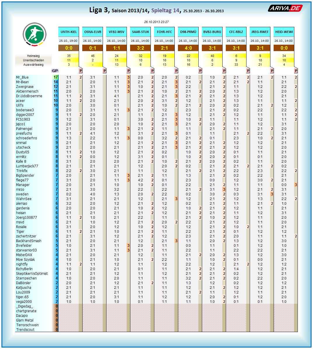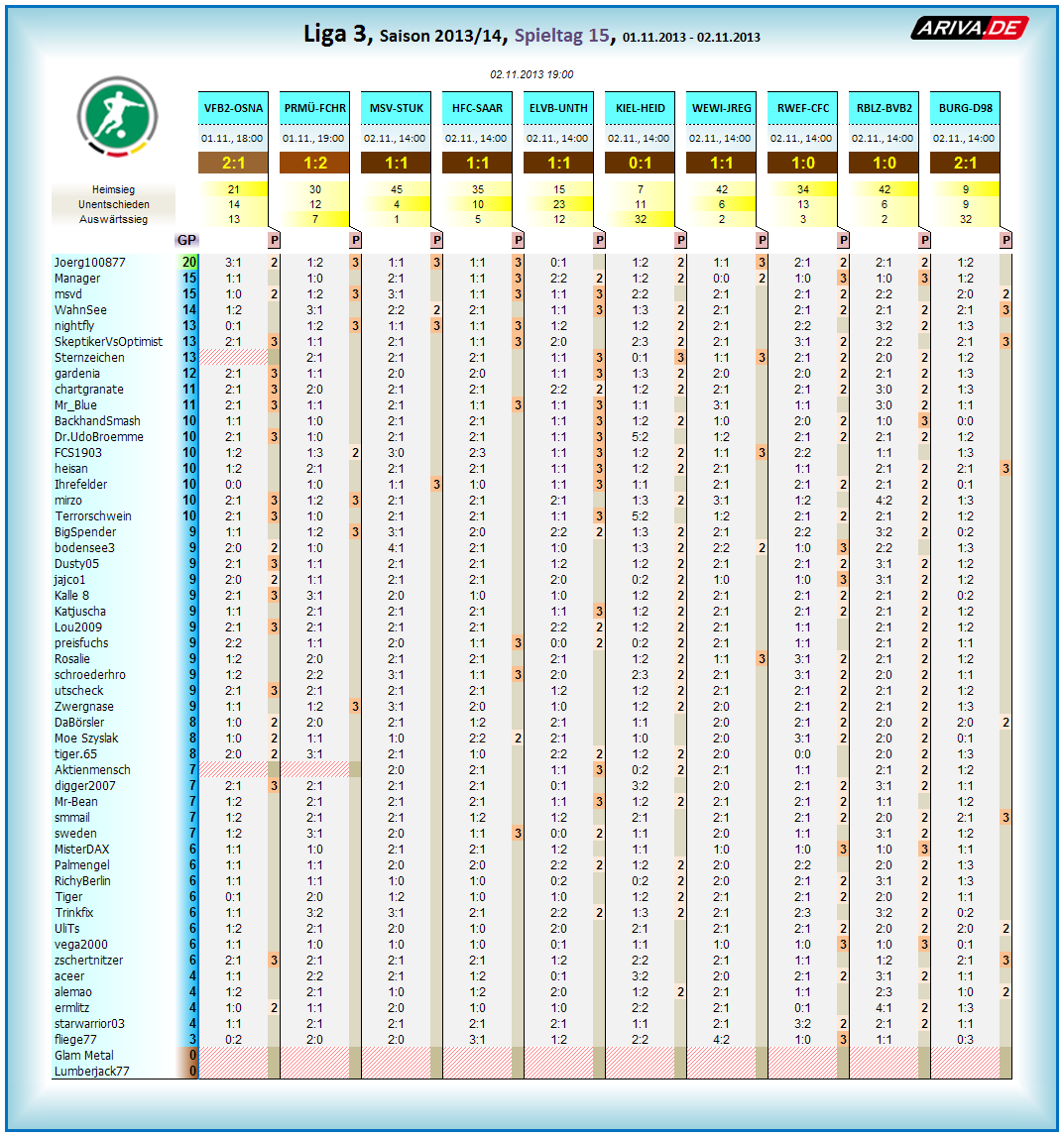 und hier findet man die aktuellen Zwischenstände im Liga3 Tippepsiel...