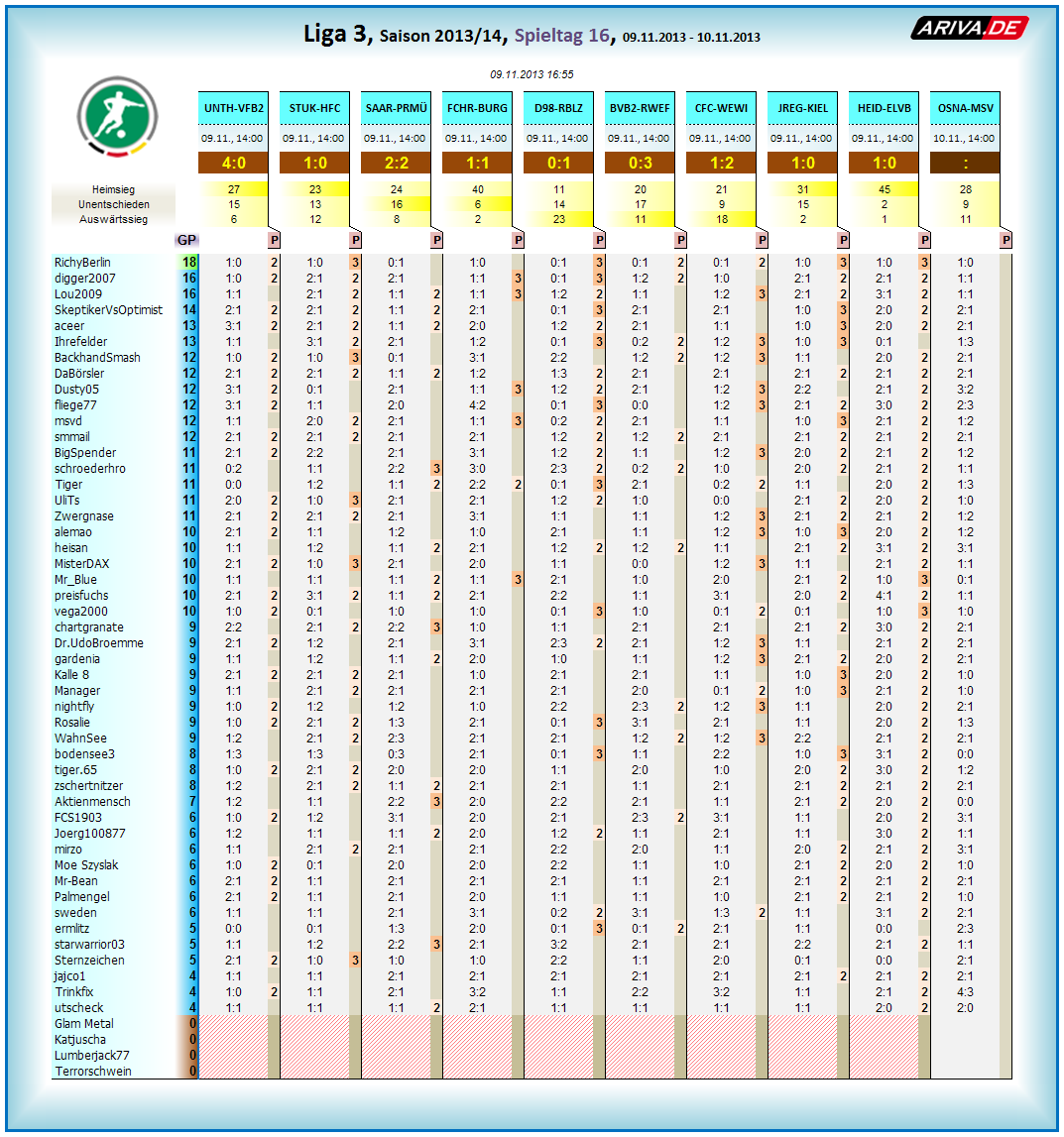 hier gehts dann weiter mit Spieltag 16 in Liga3..