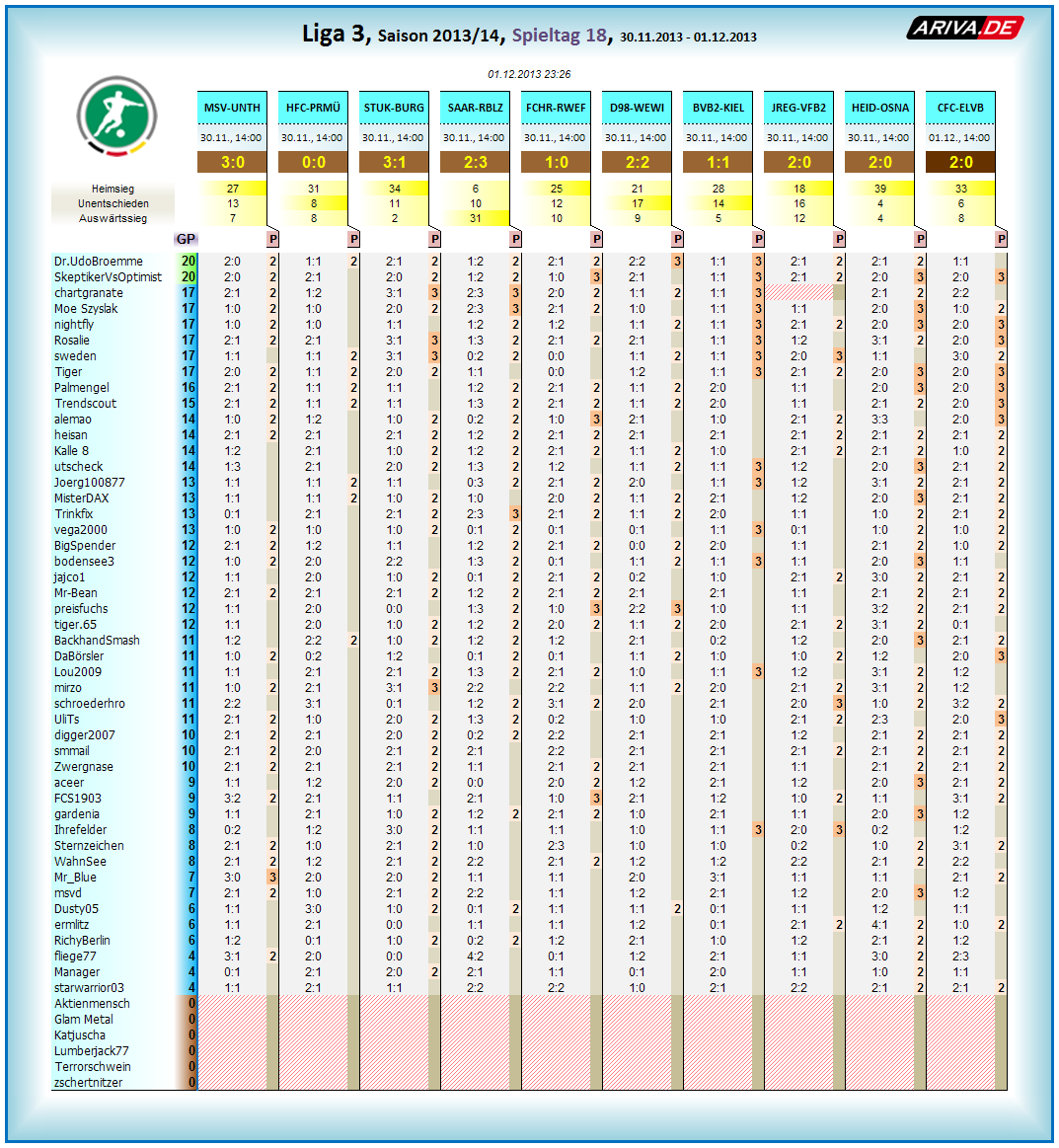 hier gehts dann weiter mit Spieltag 18 in Liga3..