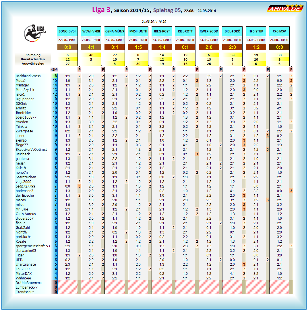 aktueller Spieltag 5, Liga3, Tippspiel.. Samstag