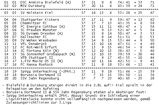 aktuell wäre der Aufstieg geklärt-- Bielefeld & Duisburg durch... Kiel Relegation zum Aufstieg...