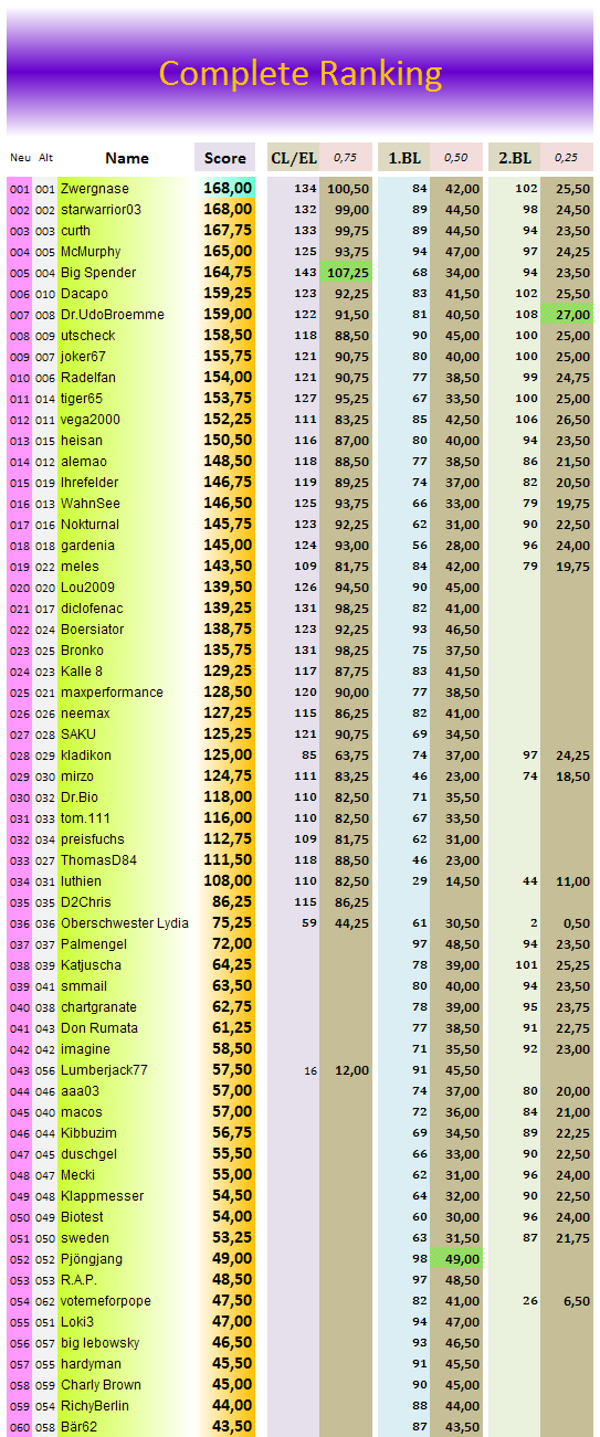 Das Gesamtscoring ist wie so ne Art "Clubwertung" gedacht, wo dort eben Landespokal, international und national einfließen, fließt hier eben CL/EL, 1.BL und 2.BL ein... :o))
