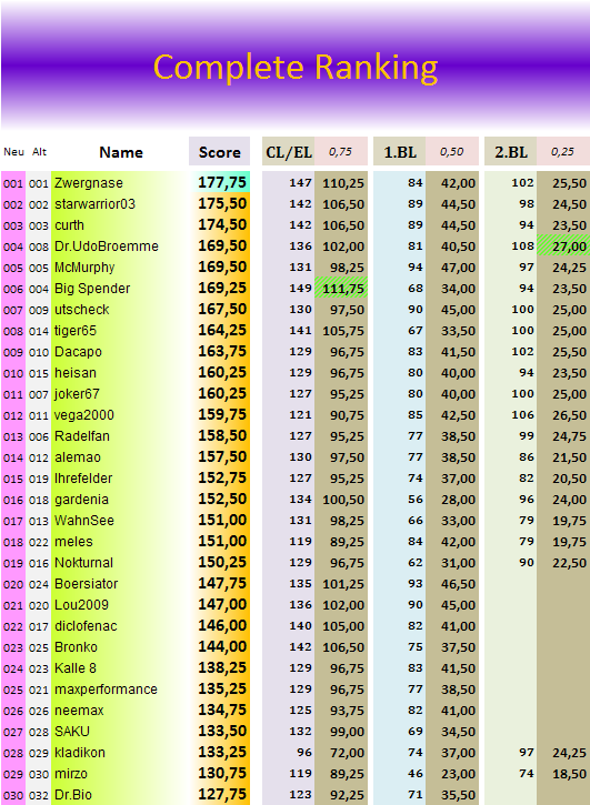 So, hier die aktuelle Gesamtwertung..
